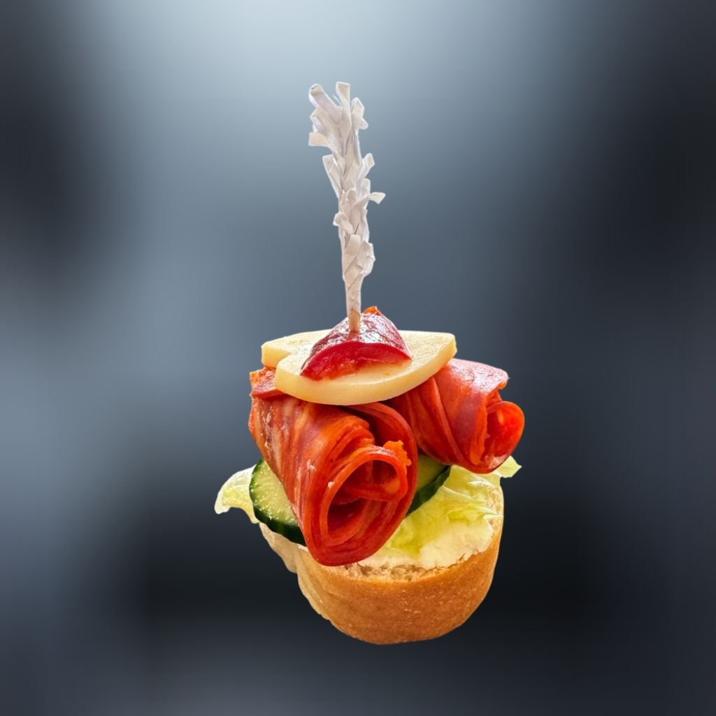 Na mäkkom rožku sa vyníma lahodná nátierka, doplnená sviežou uhorkou, šťavnatou rajčinou, chrumkavým šalátom lollo alebo ľadovým a korunovaná chorizo salámou a feta syrom. 🥖🧀🥗🍅🥒
