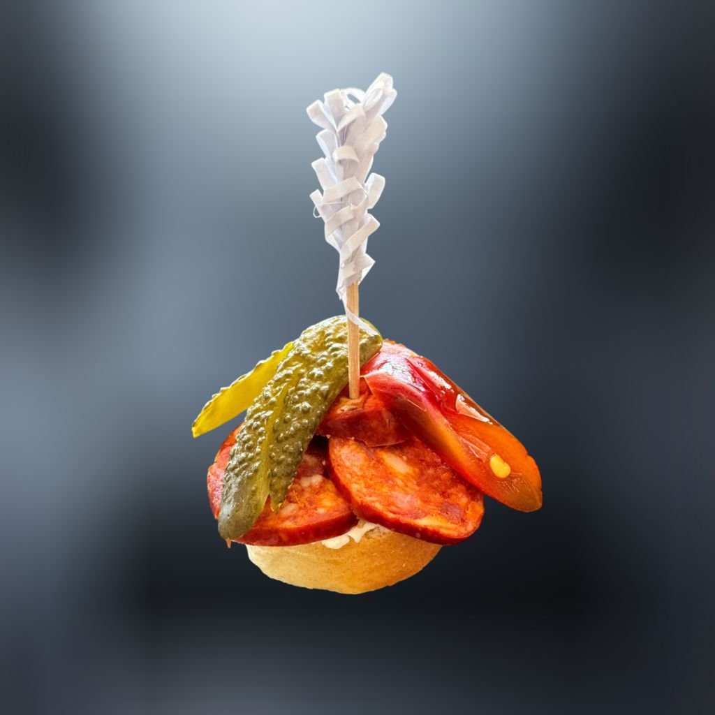 Na mäkkom rožku sa vyníma lahodná nátierka, doplnená sviežou uhorkou, šťavnatou rajčinou, chrumkavým šalátom lollo alebo ľadovým a korunovaná údenou klobáskou. 🥖🧀🥗🍅🥒
