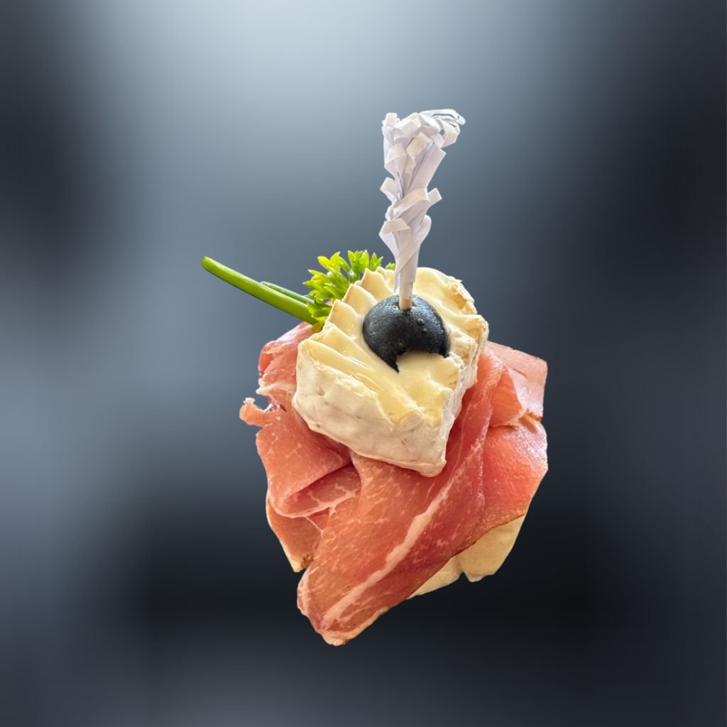 Na mäkkom rožku je základom lahodná nátierka, doplnená vyzretým hermelínom, jemným prosciuttom a pre dokonalý chuťový zážitok šťavnatou olivou, pažítkou a papričkou.