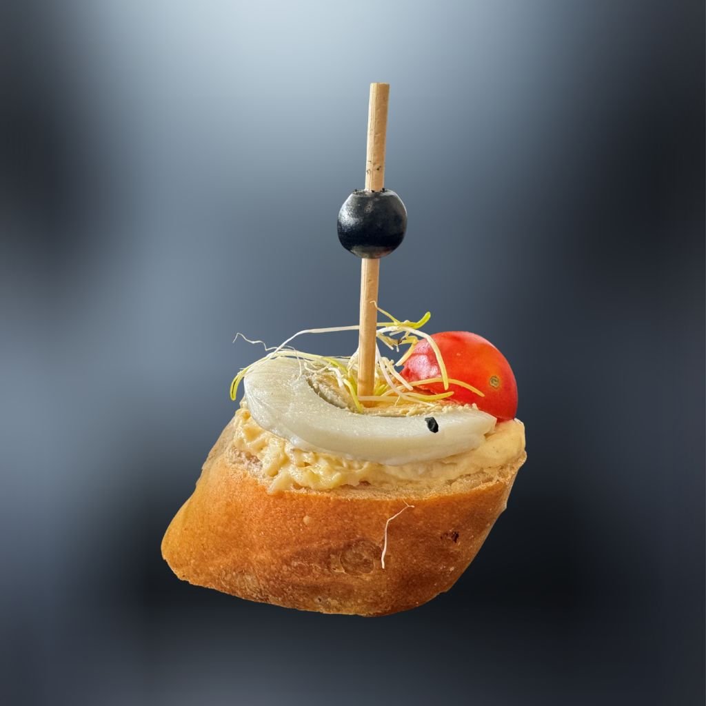 rožok, vajíčková nátierka, cherry rajčina, cesnakové výhonky