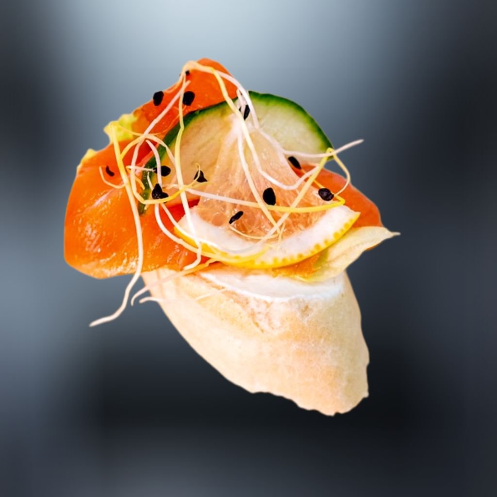 Na chrumkavej bagete sa vyníma lahodná lososová nátierka, doplnená sviežou uhorkou, šťavnatým citrónom, chrumkavým šalátom lollo alebo ľadovým 🥖🧀🥗🍅🥒