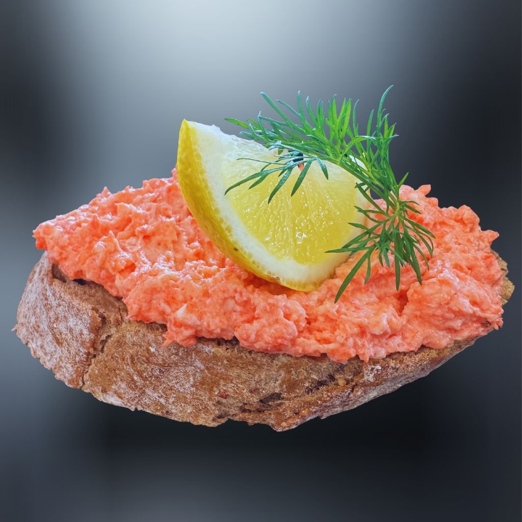 Na čerstvom chlebíku sa rozplýva lahodná lososová pena, doplnená exotickým citrónom a voňavým lístkom kôpru, vytvárajúc tak dokonalú harmóniu chutí. 🥖🧀🥗🌶️