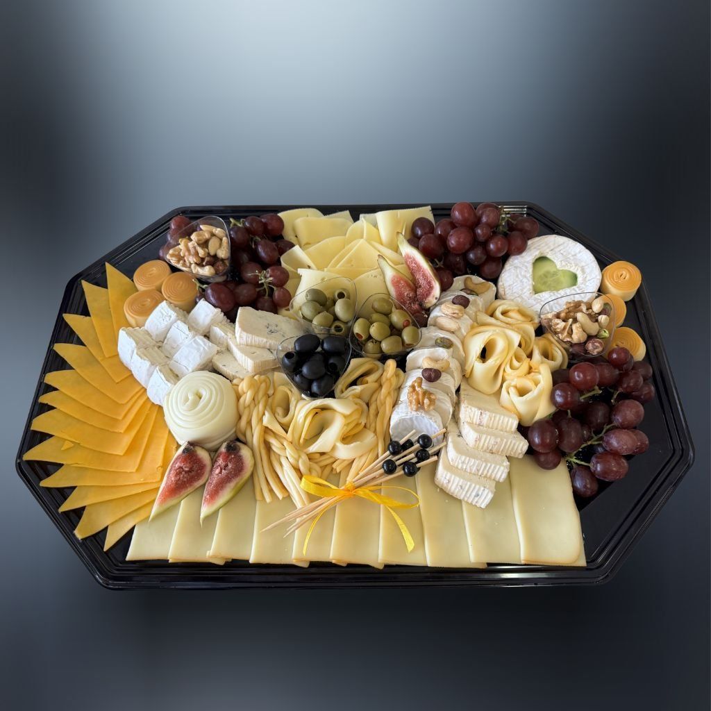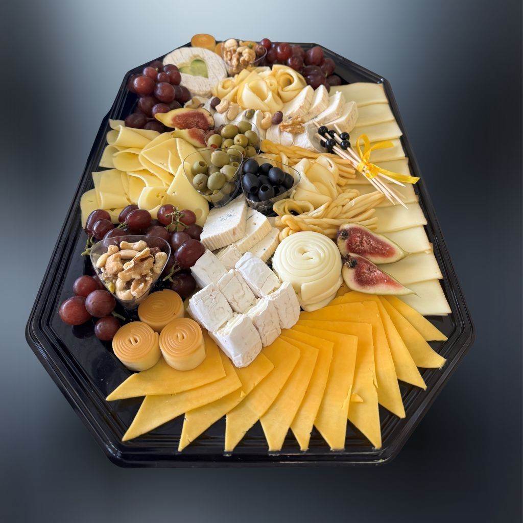 hermelín, eidam plátky údené, pareničky, údené korbáčiky, chedar, niva, kozí syr, lerdammer, hrozno, orechy vlašské, olivy, zmes orechov, figa čerstvá